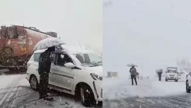 वेस्टर्न डिस्टर्बेंस के चलते हिमाचल प्रदेश के ऊंचे इलाके जैसे- चंबा, लाहौल-स्पीति, सोलंग वैली और धौलाधार की पहाड़ियों पर रविवार को इस सीजन की पहली बर्फबारी हुई. अटल टनल के एंट्री गेट पर हुई बर्फबारी का पर्यटकों ने जमकर लुत्प उठाया. वहीं, निचले इलाकों में भारी बारिश हुई. बर्फबारी के बाद इन इलाकों के तापमान में 4 डिग्री सेल्सियस की गिरावट आई है. पर्यटकों के साथ स्थानीय लोग भी बर्फबारी से काफी खुश नजर आ रहे हैं. आमतौर पर हिमाचल में बर्फबारी अक्टूबर महीने के आखिर या फिर नवंबर महीने के शुरुआत में होती थी, लेकिन इस बार करीब 20 दिन पहले हुई।