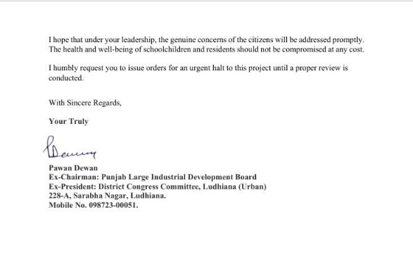 लुधियाना, 20 नवंबर: सीनियर कांग्रेसी नेता और पंजाब लार्ज इंडस्ट्रियल डेवलपमेंट बोर्ड के पूर्व चेयरमैन, पवन दीवान ने लेयर वैली, सराभा नगर में सीवेज ट्रीटमेंट प्लांट (एसटीपी) को फिर से चालू करने पर रोक लगाने की मांग की है। इस बारे में पंजाब के मुख्यमंत्री भगवंत सिंह मान को लिखे एक पत्र में, जिसकी एक कॉपी मीडिया को भी जारी की गई है, दीवान ने कहा कि सराभा नगर, सेक्रेड हार्ट कॉन्वेंट स्कूल के आसपास और लेयर वैली इलाके के लोगों की ओर से, वह यहां एसटीपी को फिर से चालू करने के कंस्ट्रक्शन पर तुरंत ध्यान देने की अपील करते हैं।