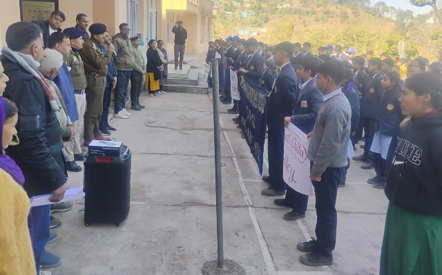 स्कूली छात्रों ने एंटी चिट्ठा अभियान के तहत पुलिस के साथ निकली जागरूकता रैली