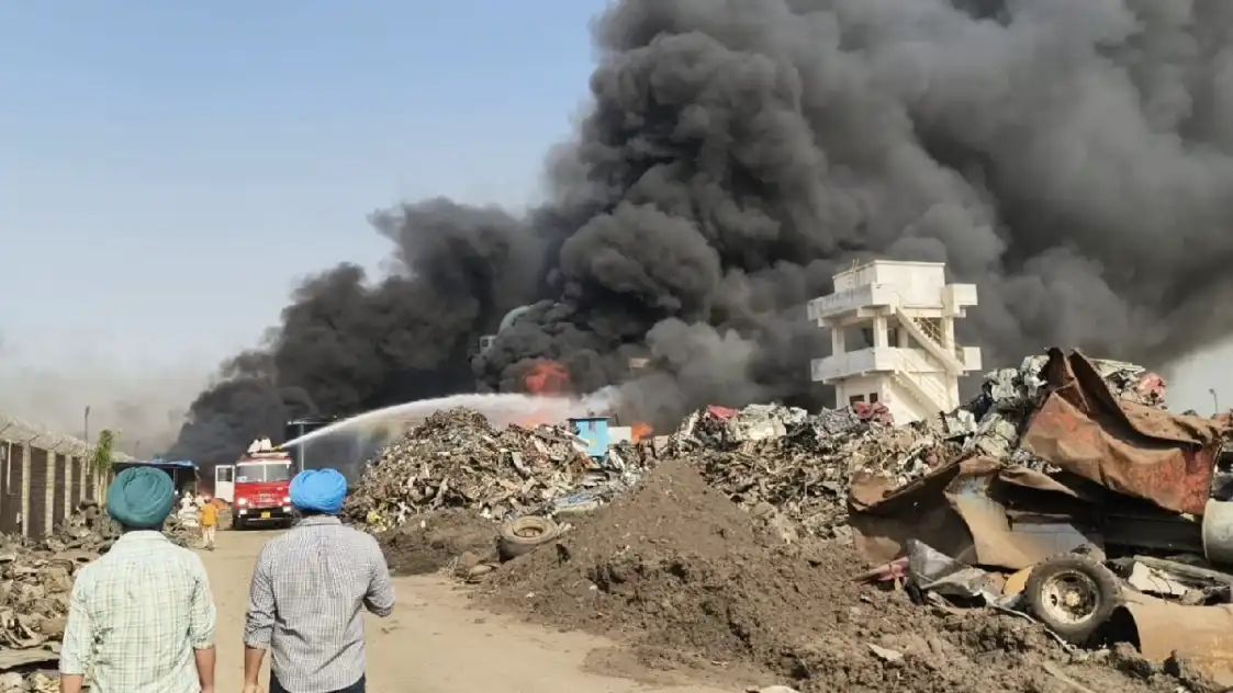 लुधियाना :  दोराहा के नजदीक गांव विशनपुर स्थित बीबी लाल स्टील फैक्ट्री में शनिवार दोपहर धमाके के बाद आग लग गई। कुछ ही मिनटों में आग ने विकराल रूप धारण कर लिया और आसमान में धुएं का गुबार छा गया, जिससे इलाके में अफरा-तफरी मच गई।