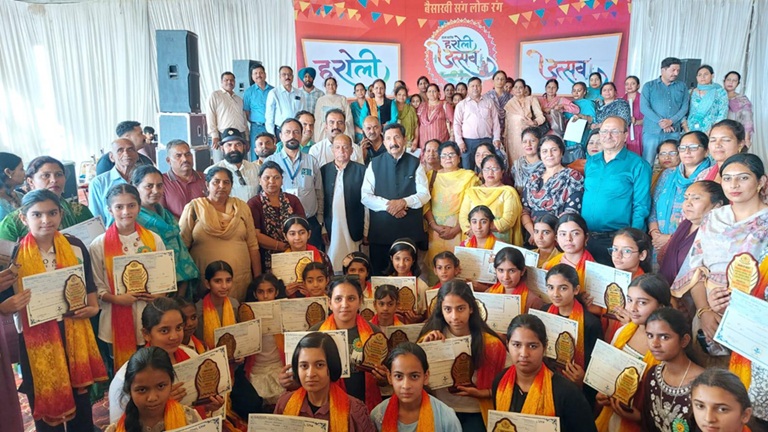 ऊना, 13 अप्रैल। हरोली उत्सव में उपमुख्यमंत्री श्री मुकेश अग्निहोत्री ने स्वां वुमेन फेडरेशन द्वारा फेडरेशन के सदस्य महिलाओं की बच्चियों के लिए आयोजित वार्षिक छात्रवृत्ति परीक्षा के अंतर्गत 40 छात्राओं को 2.79 लाख के चेक वितरित किए। यह परीक्षा स्वां वुमेन फेडरेशन द्वारा फरवरी माह में करवाई गई थी। इसमें कक्षा 5वीं से लेकर कक्षा 10वीं तक की छात्राओं को फेडरेशन की ओर से छात्रवृत्ति प्रदान की जाती है।