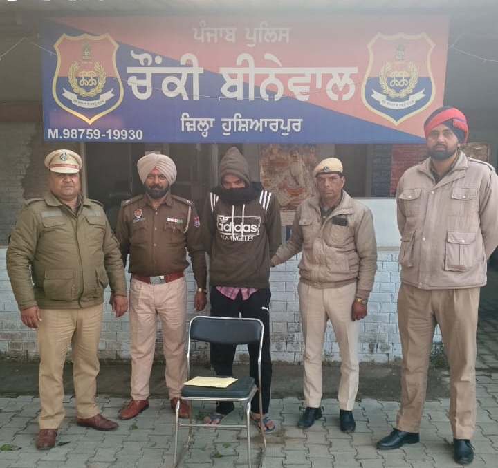 पुलिस चौकी बीनेवाल के इंचार्ज एएसआई ओंकार सिंह ने बताया कि एसएसपी होशियारपुर संदीप मलिक के दिशा निर्देशों, डीएसपी गढ़शंकर दलजीत सिंह खख की हिदायतों पर और एसएचओ गढ़शंकर गगनदीप सिंह सेखों की देखरेख में कल मैने पुलिस पार्टी के साथ बीनेवाल सिंगा रोड़ पर नाका लगाया हुआ था। उस दौरान हमें देख कर एक युवक भागने लगा तो हमने उसे काबू कर लिया। उसकी पहचान सूरज जोशी पुत्र सतदेव जोशी निवासी बीनेवाल के तौर पर हुई। उसके पास से 120 ग्राम नशीले पदार्थ को बरामद कर सूरज जोशी के खिलाफ एनडीपीएस एक्ट तहत मामला दर्ज कर लिया गया। सूरज जोशी से पूछताछ में उसके इस मामले में किए खुलासे पर उदै जोशी को भी नामजद कर लिया गया है। उन्हीनों बताया अभी सूरज जोशी के पूछताछ की जा रही है।