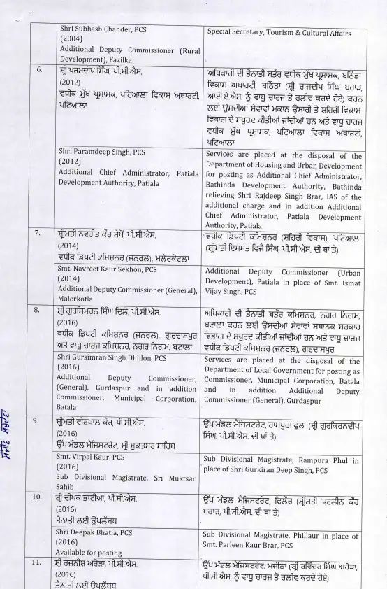 इस फेरबदल में कई उच्च पदस्थ अधिकारी शामिल हैं, जो विभिन्न विभागों में अपनी नई जिम्मेदारियों को संभालेंगे। अधिकारियों के स्थानांतरण से यह उम्मीद जताई जा रही है कि पंजाब में प्रशासनिक कामकाज को और अधिक प्रभावी और पारदर्शी तरीके से चलाया जा सकेगा। इस कदम का उद्देश्य सरकारी कामकाजी प्रणाली में सुधार और बेहतर प्रशासन प्रदान करना है। जिन अधिकारियों का ट्रांसफर किया गया है।