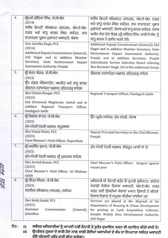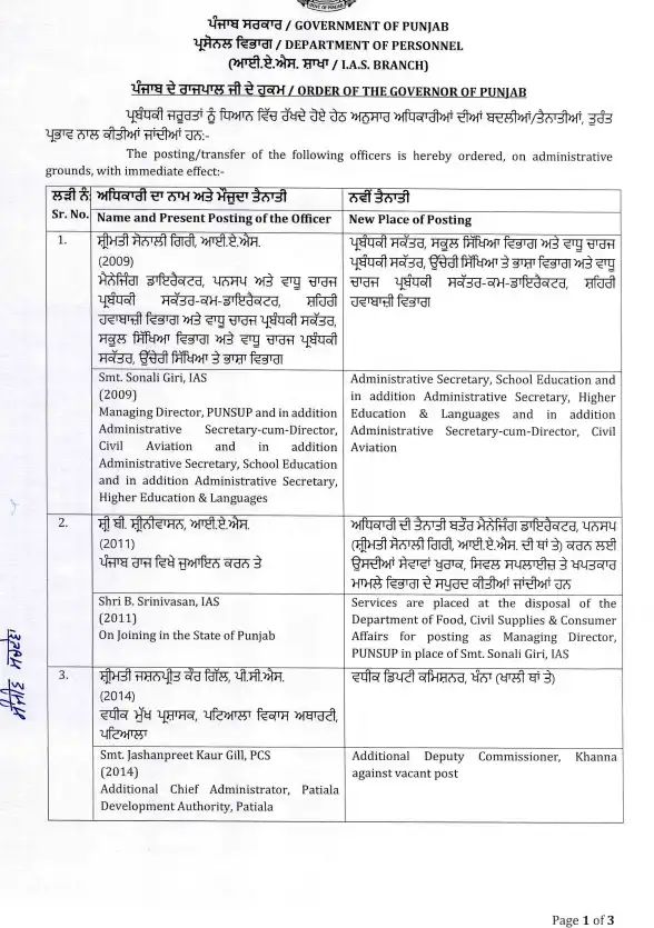 अधिकारियों के स्थानांतरण से यह उम्मीद जताई जा रही है कि पंजाब में प्रशासनिक कामकाज को और अधिक प्रभावी और पारदर्शी तरीके से चलाया जा सकेगा। इस कदम का उद्देश्य सरकारी कामकाजी प्रणाली में सुधार और बेहतर प्रशासन प्रदान करना है। सरकार ने जिन अधिकारियों के तबादले किए है ।