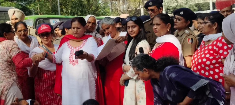 चंडीगढ़, 9 मार्च : आंगनवाड़ी वर्कर्स यूनियन पंजाब CITU की तरफ से 8 मार्च, इंटरनेशनल महिला दिवस पर पंजाब विधानसभा का घेराव करने के लिए पूरे पंजाब से आंगनवाड़ी वर्कर्स चंडीगढ़ पहुंचीं थी।