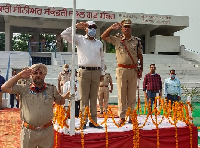 गढ़शंकर : गढ़शंकर के सरकारी सीनियर सेकेंडरी स्कूल के खेल मैदान में 75वें स्वतंत्र दिवस के अवसर पर तहसील स्तरीय संक्षिप्त समागम आयोजित किया गया। इस समागम में मुख्य अतिथि के रूप में एसडीएम गढ़शंकर श्री अरविंद कुमार ने शिरकत की और राष्ट्रीय तिरंगा फहराया। इस मौके उन्होंने संबोधित करते हुए क्षेत्र वासियों को स्वतंत्र दिवस की बधाई देते स्वतंत्रता सेनानियों द्वारा दिए गए बलिदान को याद करते हुए उनको श्रद्धांजलि भेंट की। विशेष अतिथि के रुप में पंजाब प्रदेश कांग्रेस कमेटी के महासचिव पूर्व विधायक लव कुमार गोल्डी ने शिरकत की। इस मौके लेक्चर्र विजय भट्टी ने डैपो पर तथा डॉक्टर संदीप सिंह भोगल ने कोविड के विषय पर भाषण देते लोगों को जागृत किया। समागम दौरान अन्य के साथ तहसीलदार तपन भनोट, डीएसपी होशियारपुर राकेश कुमार, जज नवदीप हुंदल, जज प्रतिभा पराशर, जज नवरीत कौर, एसएमओ गढ़शंकर डॉक्टर रमन कुमार, एसएमओ पोसी डॉ रघुवीर सिंह, एसएमओ बीनेवाल डॉक्टर चरणजीत पाल, सीडीपीओ परमजीत कौर व अन्य उपस्थित थे।