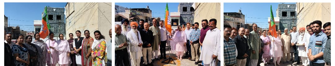 Hoshiarpur/Daljeet Ajnoha/April 6 : The Bharatiya Janata Party (BJP) celebrated its 47th foundation day with a flag-hoisting ceremony at the district BJP office, presided over by district president Nipun Sharma. Province representative Madam Anita Somprakash served as the chief guest and formally hoisted the flag to inaugurate the event. Party office-bearers and workers attended, enthusiastically participating while recalling the party’s glorious history.