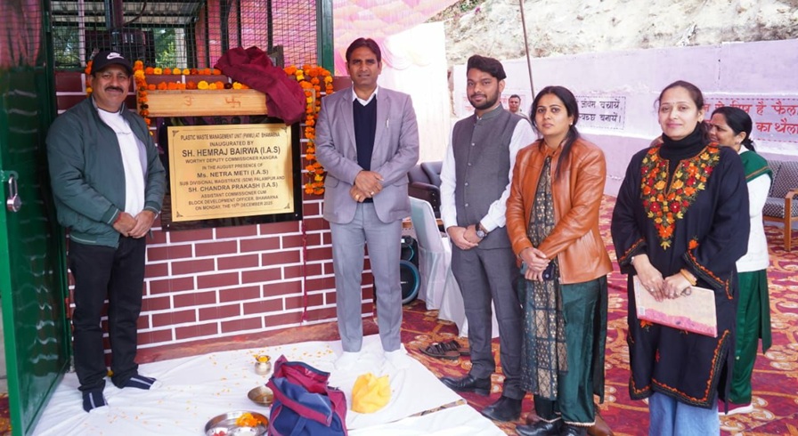 भवारना, 15 दिसंबर:- उपायुक्त कांगड़ा हेमराज बैरवा ने सोमवार को प्लास्टिक कचरा प्रवंधन इकाई भवारना का विधिवत शुभारंभ किया गया।  शुभारंभ अवसर पर एसडीएम पालमपुर नेत्रा मेती और सहायक आयुक्त एवं विकास खंड अधिकारी भवारना चन्द्र प्रकाश भी उपस्थित रहे।
