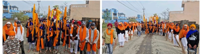 Villagers in Ajnoha organised a grand nagar kirtan to mark the 649th Prakash Purb of Jagat Guru Ravidas Maharaj.After ardas, the procession began under the guidance of Sri Guru Granth Sahib Ji from Gurdwara Sukh Sagar Sahib Ajnoha. It passed through key stops including the community hall, Jhanjghar, Gurdwara Akali Baba Phulla Singh Ji, Sri Guru Ravidas Gurdwara, and Gurdwara Akalian Sahib Ji before returning to the starting gurdwara.Local residents participated with deep devotion, offering langar of fruits, tea, samosas, bread pakoras, and more at various halts to the enthusiastic sangat.