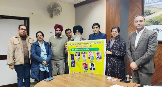 Hoshiarpur/Daljeet Ajnoha/Jan.30 : In a bid to support the Punjab government’s campaign “Yudh Nashian Ke Virudh” (War Against Drugs) aimed at eradicating narcotics from the state, students, teachers, litterateurs, and artists are making commendable contributions. This collective effort will help the Punjab government create a healthy environment for the state’s students and youth.These views were expressed by Deputy Commissioner Hoshiarpur, Ms. Ashika Jain IAS, during the public dedication of the Punjabi awareness song against drugs, ‘Yudh Nashian Ke Virudh Chala…’, written and voiced by Lecturer Sukhdev Singh (music and voice) and Varinder Singh Nimana (lyrics and voice).DC Ashika Jain stated that drug addiction severely impacts a person’s physical and mental strength, making it essential to constantly raise awareness among students and youth about this pernicious evil. She emphasized the need to guide children through education, sports, and fine arts, teaching them that a sensible person should pursue dreams through hard work and a positive outlook, without ever resorting to drugs.Praising the awareness song ‘Yudh Nashian Ke Virudh Chala…’, prepared by the Hoshiarpur Education Department in collaboration with the district administration, she said this initiative would prove helpful in ongoing efforts to protect school and college students from narcotics.The event was attended by ADC (Development) Nikas Kumar IAS, ADC (General) Amarbir Kaur Bhullar, Assistant Commissioner Parmpreet Singh, along with several senior officials from the Hoshiarpur administration.