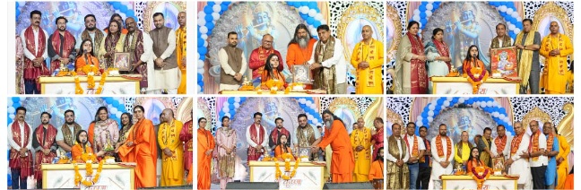Quoting the emotional essence of the katha she said that a body without life loses its vitality, and that Krishna was the very pran and soul of Vrindavan; when He left for Mathura, the village seemed empty and bereft of life. She further explained that Krishna’s move to Mathura was for the establishment of dharma, and that He ended Kansa’s tyrannical rule by killing him and restoring the kingdom to Ugrasen.