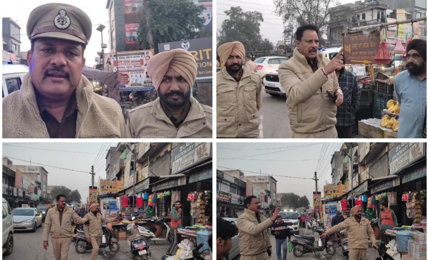 Hoshiarpur/ Jan 29/Daljeet Ajnoha : Mahilpur police station in-charge Madan Singh led a drive to remove illegal encroachments by shopkeepers in the bustling Kot Fatui market on Thursday, restoring smoother traffic flow on key roads.For months, the town has battled frequent traffic jams every 15 minutes along routes like Kot Fatui-Manan Hanna Road, Adampur Road, Garhshankar Road, and Behram Road. Despite repeated complaints from local residents to authorities, no action was taken—until now.Accompanied by his team and Kot Fatui police post in-charge Sukhwindar Singh, SHO Madan Singh cleared the encroachments on the spot. Challans were also issued to vehicles parked illegally.Shopkeepers received a stern warning: any future extension of shop goods onto public space will invite strict legal action. “Follow-up checks will continue periodically,” the SHO stated. “Rehri-farri vendors or shopkeepers found encroaching will face the full force of the law.”