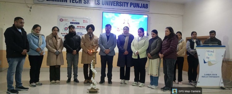 Hoshiarpur/Daljeet Ajnoha/Jan.12 : National Youth Day was celebrated at Lamrin Tech Skills University Punjab with great enthusiasm. Prof. Dr. Satyal, Registrar of the University, addressed the students and highlighted the initiatives taken by Swami Vivekanand to build a strong nation. He emphasized the importance of youth in nation-building.