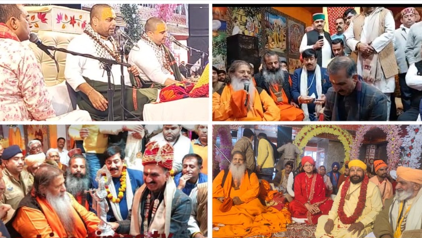 Una (HP), Daljeet Ajnoha/Feb.5 : The religious conclave at Shri Radha Krishna Temple Ashram in Kotla Kalan, Una (Himachal Pradesh), organized by national saint Baba Bal Ji under the auspices of devotee groups, continues unabated.Over the first three days, Gita scholar Swami Gyananand Ji delivered enlightening discourses on the Bhagavad Gita, captivating the gatherings. On the fourth day, as is the annual tradition, a grand Shobha Yatra procession was held, with Himachal Pradesh Chief Minister Sukhvinder Singh Sukhu prominently participating alongside other dignitaries and a large number of saints.Vrindavan’s devotional singer Rasika Pagal, the grace-recipient Chitr Vichitr, graced the event. During the procession, their bhajans transformed the atmosphere into a divine Krishna realm. The following day, they enthralled a massive crowd at the ashram with soulful renditions, including hits like “Tera Naam Japo Mai Har Pal, Tera Naam Japo Ghari Ghari,” “Shama Pyari Kunj Bihari Jai Jai Hari Das Dulari,” and “Jai Jai Shama, Jai Jai Shama Shri Vrindavan Dham.”Baba Bal Ji emphasized that true devotion and a blissful life come from connecting with one’s Guru’s feet. Starting tomorrow, renowned katha vyas Acharya Gaurav Krishna Goswami will narrate the Shrimad Bhagavat Katha, concluding on February 12. The saint announced that MP Anurag Thakur, Rana KP, and other notables will attend at various times.Prominent saints present included Kishor Chand, Yashpal Ji, Vishambar Ji, Tek Chand, Shyam Lal, Behan Kailash Ji, Paramjit Singh Pamma, Pawan Kumar Das, Pandit Raj Kumar, Ranjeet Singh, and others.