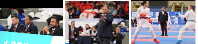 During the competition on Tatami No. 2, Sensei Jagmohan Vij officiated under the supervision and guidance of distinguished WKF officials including Haitham Farouk (Egypt), member of the WKF Referee Commission; Gideon Schwabe (Israel), senior member of the competition Appeals Jury, Olympic referee Darko Zaric (Slovakia), Yuki Abe ( Japan) and Rovshen Saryyev from Turkmenistan