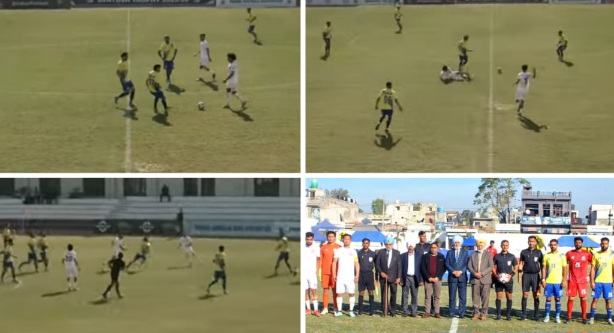 Hoshiarpur/Dec 15 /Daljeet Ajnoha : The 79th National Football Championship under the Santosh Trophy, organized by the Punjab Football Federation, was inaugurated with great fanfare at Principal Harbhajan Singh Football Stadium in Sri Guru Gobind Singh Khalsa College, Mahilpur.In the opening match, Jammu & Kashmir defeated Ladakh 3-0, setting an exciting tone for the tournament. District Sports Officer Gurpreet Singh served as chief guest, while Arjuna Awardi footballer Gurdev Singh Gill chaired the event. Gill interacted with the players and motivated them to compete in the true spirit of sportsmanship.Gurpreet Singh remarked that Mahilpur is the heart of football in Punjab, making it a matter of pride to host Santosh Trophy matches here.In the second match, Rayat Bahra University Hoshiarpur Vice-Chancellor Dr. Chander Mohan attended as chief guest, with Director Kuldeep Singh Rana presiding. They congratulated the organizers on the successful event. Punjab dominated Himachal Pradesh 6-0 in a resounding victory.The event drew a large crowd, including District Sports Officer Kapurthala Pardeep Kumar, SP Swinderjeet Singh Bains, Professor Apinder Singh Mahilpuri, Bakshish Singh Bagla, Wing Commander Hardev Singh Dhillon, Harjinder Singh, Principal Jagmohan Singh, Jarnail Singh Palli Jhikki, coach Mahinderjeet Singh, Principal Sukhinder Singh Ricky, Principal Jugal Kishore, Roshanjeet Singh Panam, Jharmeel Singh, Master Binder Singh, Baljinder Maan, Takdir Singh Bharti, Prof. Sarwan Singh, Dr. J.B. Sekhon, football coach Charanjeet Singh, Satprakash Sangha, engineer Tarlokchan Singh, Vij Bala, Dr. Raj Kumar, Dr. Parampreet Kaindowal, and hundreds of sports enthusiasts.