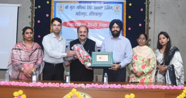 Hoshiarpur/ Daljeet Ajnoha/Nov 6 :  The Postgraduate Department of Hindi at Sri Guru Gobind Singh Khalsa College, Mahilpur, organized a special lecture on the theme “Diaspora Hindi Literature.” The session was graced by eminent London-based writer Tejendra Sharma (MBE), who delivered the keynote address.In his welcome remarks, Principal Dr. Parvinder Singh encouraged students to immerse themselves in literature, art, and culture, highlighting the importance of creative engagement in academic growth.Addressing the gathering, Tejender Sharma discussed the growing global recognition of Hindi language and literature, noting that contemporary diaspora writers reflect both deep attachment to their homeland and a mature engagement with global issues. He also spoke about the role of Hindi cinema in the promotion of the language, tracing the evolution of art and commercial films and their cultural significance.Concluding the event, Head of the Hindi Department Lt. Dr. Deepak delivered a vote of thanks and shared details about the department’s various academic initiatives. The college management honored Tejender Sharma for his remarkable contributions to Hindi literature.The event was attended by Dr. Parminder Kaur, Prof. Nancy, Dr. Vikrant Rana, Dr. Aarti Sharma, Dr. J.B. Sekhon, Prof. Rohit Puri, and a large contingent of students.