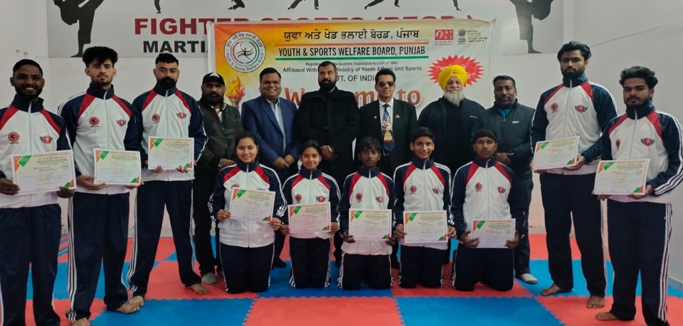 Kapurthala l Daljeet Ajnoha : The Youth Sports Welfare Board organised a Fitness and Sports Event at Fighter Sports Zone, Kartarpur Road, Kapurthala. Coaches Pradeep Bajaj and Sukhdeep Singh Bajwa trained participants in various techniques of Wushu, Karate, and Taekwondo, raising awareness among the athletes.Players from Wushu, Karate, and Tikewondo took active part and delivered impressive performances. Youth Sports Welfare Board president Rajiv Walia and Dr. Jasbir Singh were special guests at the event. They honoured the Wushu and Karate players with certificates, thanked coaches Sukhdeep Singh and Pradeep Bajaj, and extended best wishes for their future endeavours.Addressing the players, Dr. Jasbir Singh emphasised that children today must balance studies with sports. “Engaging in sports keeps students’ minds and bodies fit and active,” he said. He praised Rajiv Walia for introducing new sports in Punjab, giving the state’s youth fresh opportunities. He urged all Punjabis to stay away from drugs and excel in sports.President Rajiv Walia stressed encouraging children to participate in sports competitions. “Linking children to sports fosters their mental and physical development and keeps them healthy,” he added.Top performers included Manraj Singh Lali, Gurnoor Singh, Ali Ahmad, Simranjeet Singh, Devika Bhatti, Muskan, Payal, Ragni, Rabia, Sarabjot Singh Lali, Surjeet Singh, Jasswinder Kumar, Jatin, Rabin, Rehan Walia, and Manpreet Singh.Others present included Gagandeep Kaur, Meena Kumari, Mamta, Puneet Verma, Balwinder Singh, and Navdeep Singh.