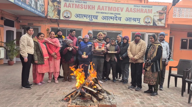 Hoshiarpur/Daljeet Ajnoha/Jan.13 : The Tek Chand Sood Charitable Trust in Hoshiarpur marked the auspicious occasion of Lohri with great enthusiasm and zeal. Children from the ashram, along with staff members, lit a bonfire, offered peanuts and rewri to the fire deity, and savored rewri, gachak, and peanuts amid celebrations.On this festive day, children, staff, and attendees enjoyed songs and dances for entertainment.Trust chairman Sh. Navdeep Sood, also associated with Bhagwan Das Sood Charitable Trust in Hoshiarpur, extended Lohri greetings, expressing hope that the festival would bring happiness and prosperity to all lives. He highlighted that the trust has been providing completely free services for the past 13 years, making every possible effort for the all-round development of special needs children.