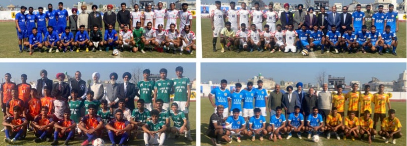 Hoshiarpur/Daljeet Ajnoha/Feb.15 : Shri Guru Gobind Singh Khalsa College Mahilpur hosted exciting football clashes on the third day of the 63rd All India Principal Harbhajan Singh Tournament, organized under the leadership of Kulwant Singh Sangha, president of Principal Harbhajan Singh Sporting.Football enthusiasts were treated to riveting action in various matches. Chief guests including Wing Commander Hardev Singh Dhillon, Tajinder Kumar, Balvir Singh, Sohan Singh Gill, Gursevak Singh Bains, Daljit Singh UK, Santosh Singh Saini, Kuldeep Singh Khabda, and Amrik Singh Bains attended. They interacted with players and assured organizers of full support.In the college category opener, Khalsa College Mahilpur defeated Football Academy Baddowal 2-0. In the club category, Rail Coach Factory Kapurthala beat Namdhari Football Club 2-0 to advance, while BSF thrashed RT Hyderabad 5-0 in another clash. Large crowds of local sports lovers turned up to cheer.